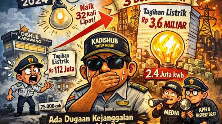 Anggaran Listrik Dishub Karawang Melonjak 3000%, Rp112 Juta di 2024 Jadi Rp3,6 Miliar di Akhir 2025