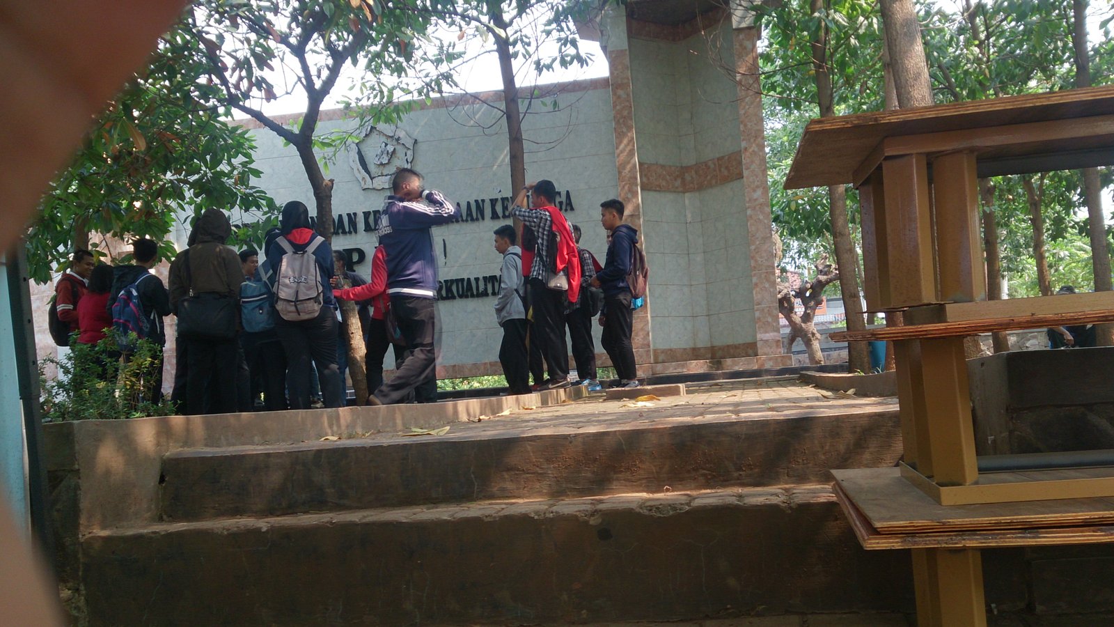“Saya datang dengan teman saya ini,” ujarnya sambil menunjuk temannya yang membawa kertas formulir.