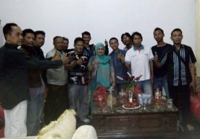 Sejumlah insan pers atau wartawan saat foto bersama dengan Ketua Komisi C DPRD Karawang, Elievia Khrissiana ST di kediaman pribadinya.