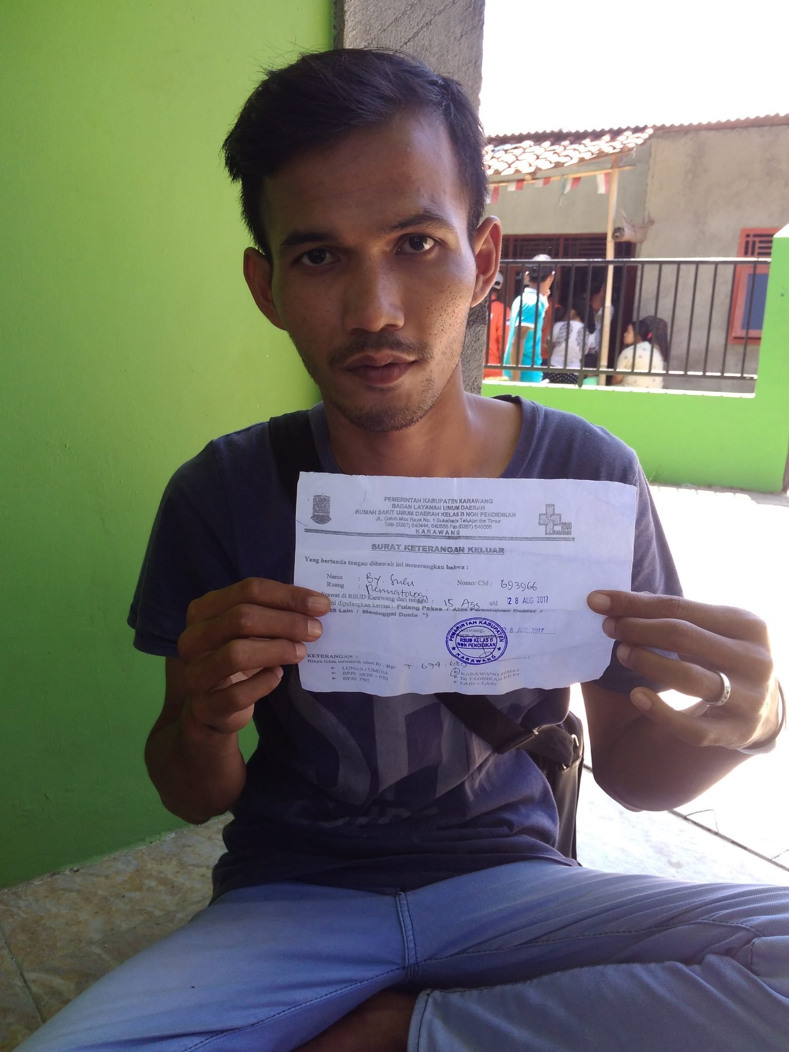 Dijelaskan Hendri, saat istrinya, Sulis hendak melahirkan (15/8), kemudian dibawa ke RSUD Karawang dengan melalui persalinan menggunakan BPJS mandiri/berbayar. Setelah melahirkan dan dinyatakan sehat, Jumat (18/8) pihak rumah sakit mengizinkan istrinya pulang tanpa disertai bayi yang lahir prematur tersebut karena pihak rumah sakit tidak mengizinkan dan harus mendapat perawatan medis