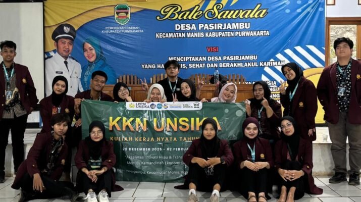 PURWAKARTA – Mahasiswa Kuliah Kerja Nyata (KKN) Universitas Singaperbangsa Karawang (Unsika) Desa Pasirjambu melaksanakan kegiatan PADIMART (Pasirjambu Digital Mart), sebagai langkah awal dalam mendukung penguatan ekonomi masyarakat berbasis digital, Jumat (9/1/2026).
