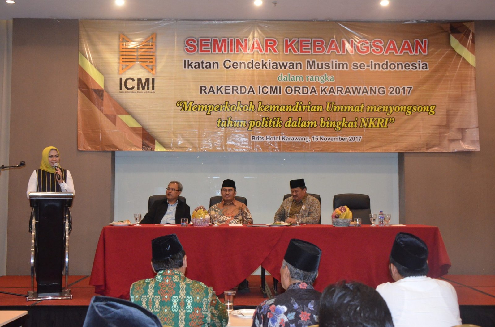 Ikatan Cendikiawan Muslim se-Indonesia (ICMI) Organisasi Daerah (Orda) Kabupaten Karawang, dalam rangka Rakerda ICMI orda Karawang tahun 2017, menggelar acara Seminar Kebangsaan, Rabu (15/11). Acara yang bertema “Memperkokoh Kemandirian Ummat Menyongsong Tahun Politik Dalam Bingkai NKRI”, Seminar yang bertempat di Ballroom Brits Hotel Karawang. Dihadiri dan sekaligus dibuka oleh Bupati Karawang Cellica Nurrachadiana dan didampingi oleh Kepala Kemenag Kabupaten Karawang H. Sopian, beserta para pengurus ICMI ORDA Kabupaten Karawang.