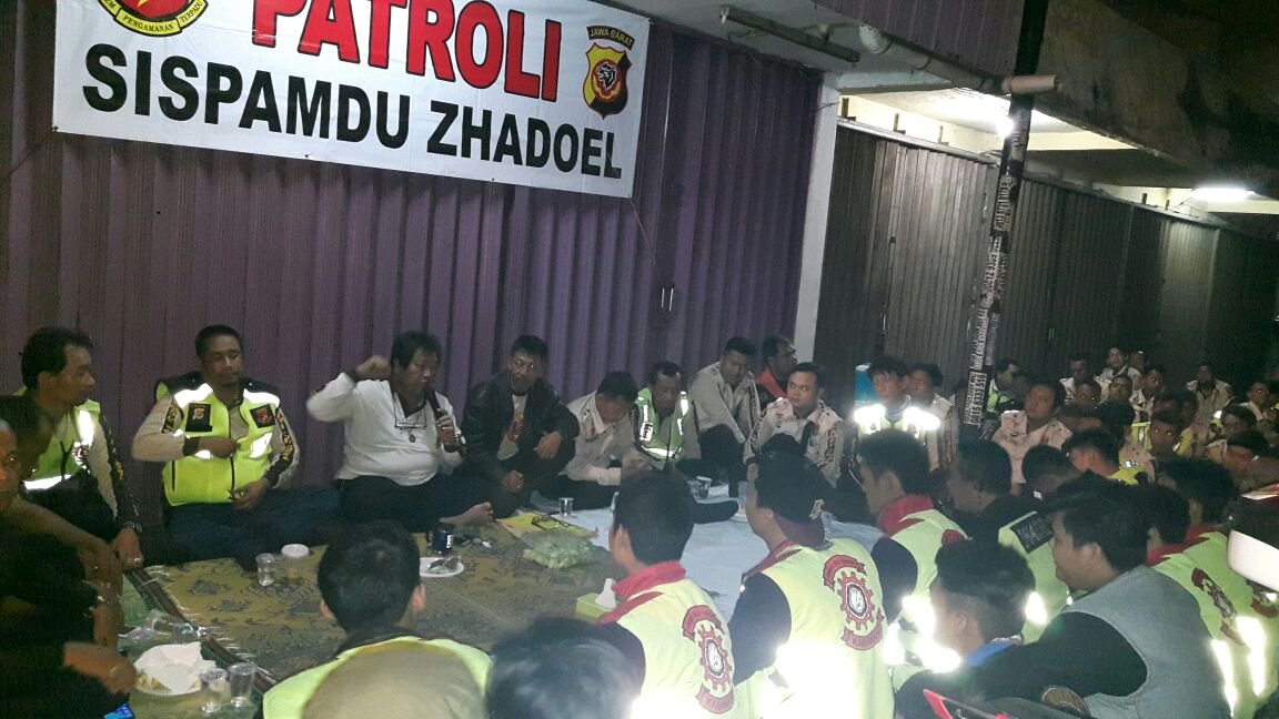 Sinergitas aparat Kepolisian Polres Karawang dan anggota Sispamdu Zhadoel terjalin sederhana namun sarat makna. Digelar di pinggir jalan Tuparev,Kampung Cinangoh, Kelurahan Karawang Wetan, Kecamatan Karawang Barat, Sabtu (4/11/2017) malam. Kasat Binmas AKP Marsono berikan penyuluhan dan diskusi soal kamtibmas dan tertib berlalu lintas kepada puluhan anggota Zhadoel.