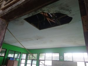 “Kayu-kayunya sudah lapuk. Plafon sudah rusak. Saat anak-anak belajar didalam kelas kurang nyaman, takut ambruk. Namanya musibahkan tidak tahu, apalagi bangunannya sudah rusak, ngeri juga,” imbuhnya.