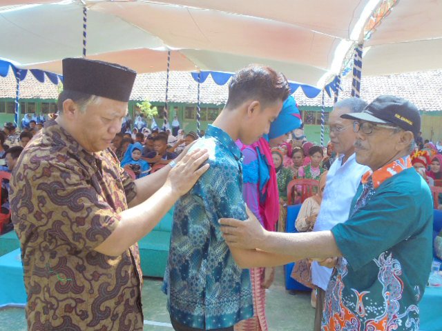 Acara penyerahan siswa kelas IX oleh kepala SMPN 2 Cilamaya Wetan kepada Komite sekolah.