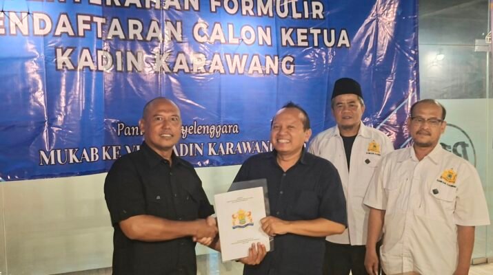 KARAWANG Spirit – Tiga nama resmi menyerahkan formulir pendaftaran pada bursa calon ketua Kamar Dagang dan Industri (KADIN) Kabupaten Karawang, Selasa (7/4/26). Ketiganya adalah Aziz Mathori, Aris Susanto, dan Novriyanto Syafrudin.