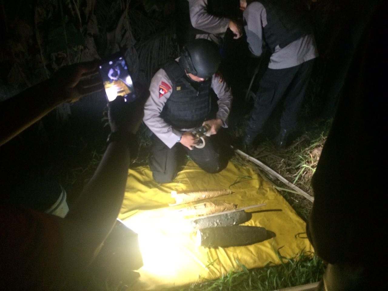 Dikatakan Kapolres, warga yang menemukan temuan mortir pertama kali adalah Haryanto alias Wisnu (37). Saksi diketahui menginjak karung yang berisikan peledak jenis mortir sebanyak tiga karung. Sontak, menurutnya, saksi yang merasa penasaran atas karung yang diinjaknya tersebut, langsung membuka isi karung dengan pecahan kaca.