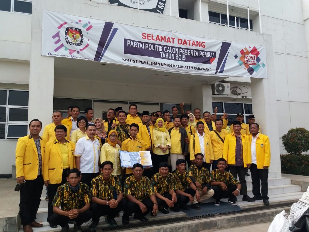 Ketua DPD Partai Golkar Karawang, Sri Rahayu Agustina yang datang bersama puluhan pengurus partai, datang pada pukul 14.00 WIB. Dikatakan Sri, pendaftaran parpol dengan didampingi oleh para pengurus merupakan langkah awal pihaknya merebut kemenangan di Pemilu 2019 mendatang.